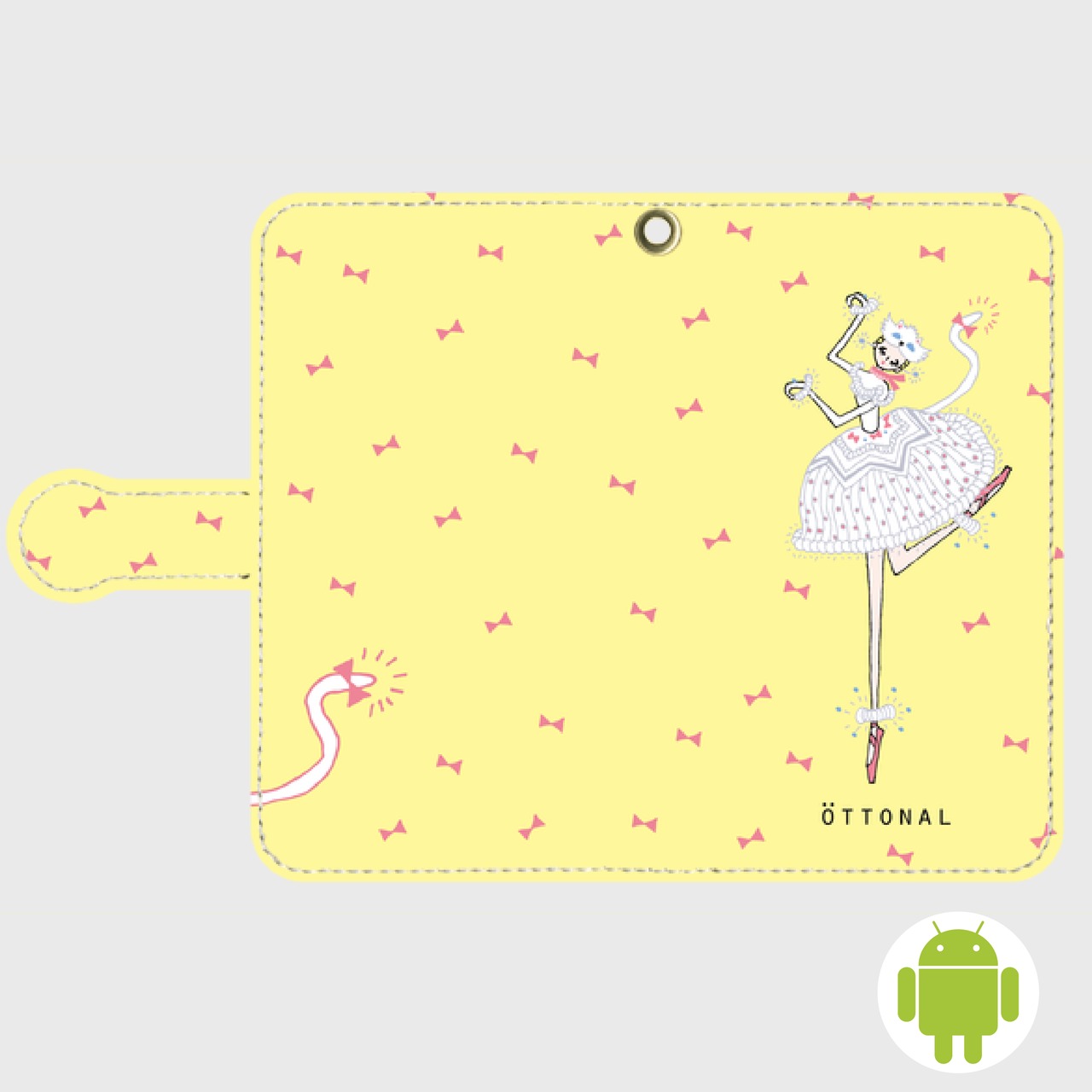 (Android)白い猫手帳型ケース バレエ/バレリーナ